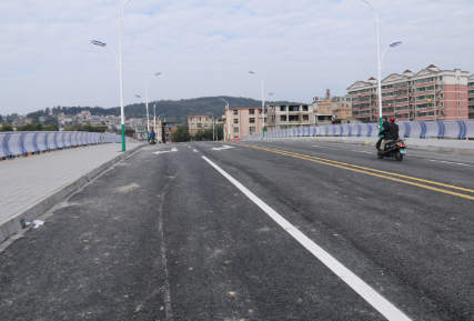 社興橋及兩側接線工程位于龍津河東風橋下游約580米,為城市次干道,橫跨龍津河,將社興的東興路與登高東路連接起來。道路全長224米,社興橋橋梁長133米,橋寬25米,雙向四車道及5米寬非機動車和人行道,設計車速為30km/h,項目總投資3000萬元。