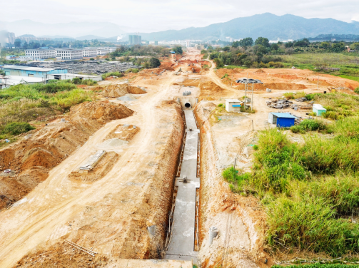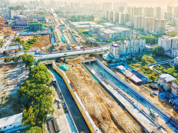 2017年9月開(kāi)工。目前,下穿車(chē)型通道U型槽、箱型通道、排洪溝主體已完成管廊主體結(jié)構(gòu)已完成45米