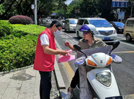 八月末,天氣炎熱,市政集團的志愿者們身著紅馬甲,不畏臟、不怕累,各司其職,分時段分批次在蓮新社區(qū)范圍內開展創(chuàng)城活動,其中清潔崗的志愿者們帶著夾子、掃帚、垃圾袋等清掃工具,對街道路面的紙屑、塑料袋、煙頭等生活垃圾進行清掃,將亂停亂放的自行車整齊的排列在停車位上,使得街道整潔一新。宣傳崗的志愿者們走進商鋪,發(fā)放文明宣傳標語,動員商鋪店主一起,注意門前三包,在平時營業(yè)工作中,遇到不文明行為時,進行及時規(guī)勸,讓市民自覺遵守,規(guī)范自身行為,積極踐行“共創(chuàng)共享”的創(chuàng)城理念,共同為創(chuàng)建文明城市出一份力。交通崗的志愿者們通過積極引導道路交通,向過往行人科普創(chuàng)城溫馨小知識,加強城市文明建設。